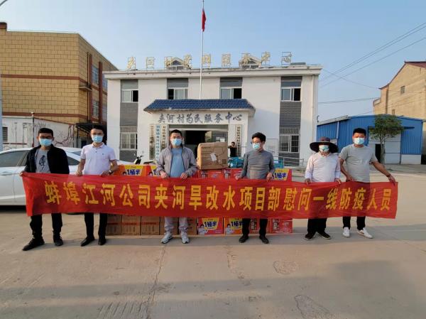 4月6日固鎮(zhèn)夾河旱改水項目部向村委會防疫人員送去慰問