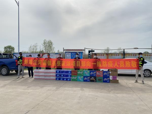 4月11日固鎮(zhèn)澥河堤防項目部慰問一線防疫人員